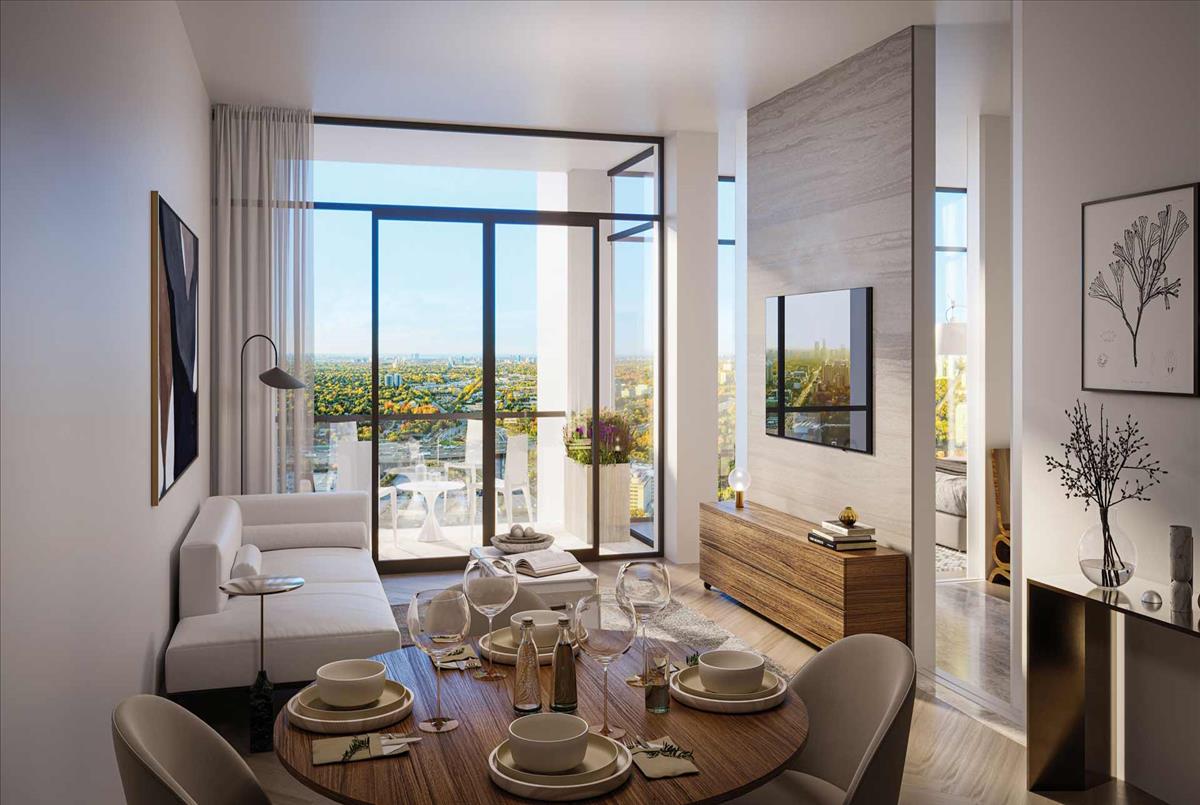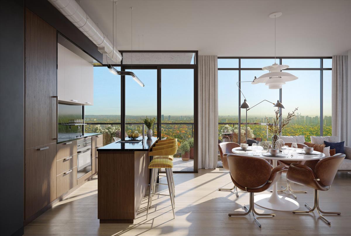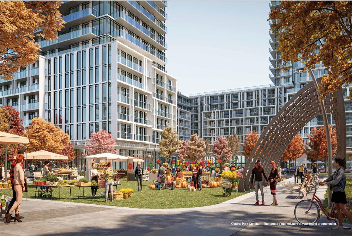 Discover the unparalleled lifestyle offered by The Residences at Central Park, an inspired 12-acre master-planned community nestled above the natural treasures of the East Don Parkland ravine. This environmentally sustainable development combines contemporary architecture with organic, leaflike details to create a harmonious blend of urban living and nature. The community is designed to offer a sensory experience like no other, with sparkling glass facades that seamlessly integrate with the lush, green surroundings.
