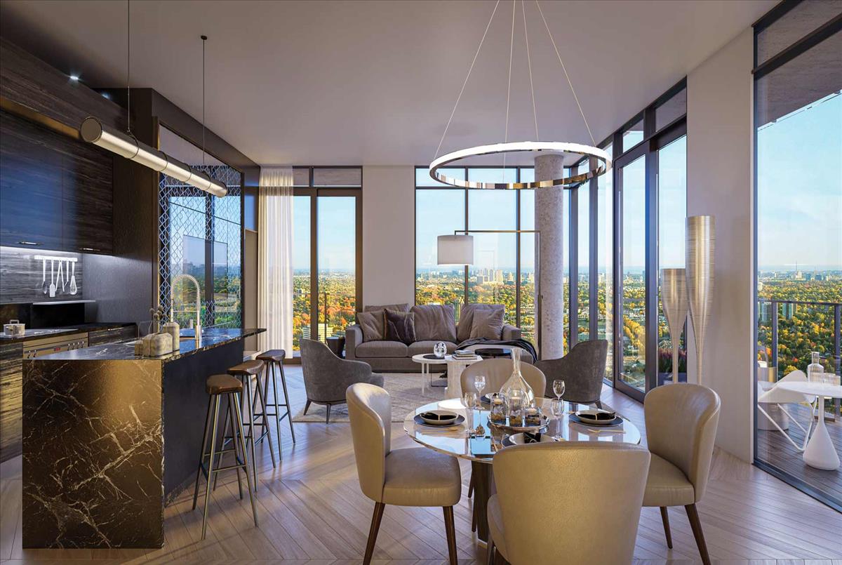 Located in the prestigious Bayview Village neighbourhood, residents enjoy easy access to chic retail, vibrant restaurants, and excellent public transit options, including the subway and GO train right at their doorstep. The Central Park Common, a vibrant three-acre urban park, serves as the heart of the community, featuring pedestrian-friendly streets, bicycle paths, original art installations, and year-round programming such as farmers' markets and live music. The Park Club, a 55,000 square-foot amenity space, offers an extensive range of fitness, wellness, leisure, and social amenities, including two expansive rooftop terraces, a saltwater pool, and zen gardens. Embrace a lifestyle where the urban and natural worlds connect, offering the best of both in perfect balance.