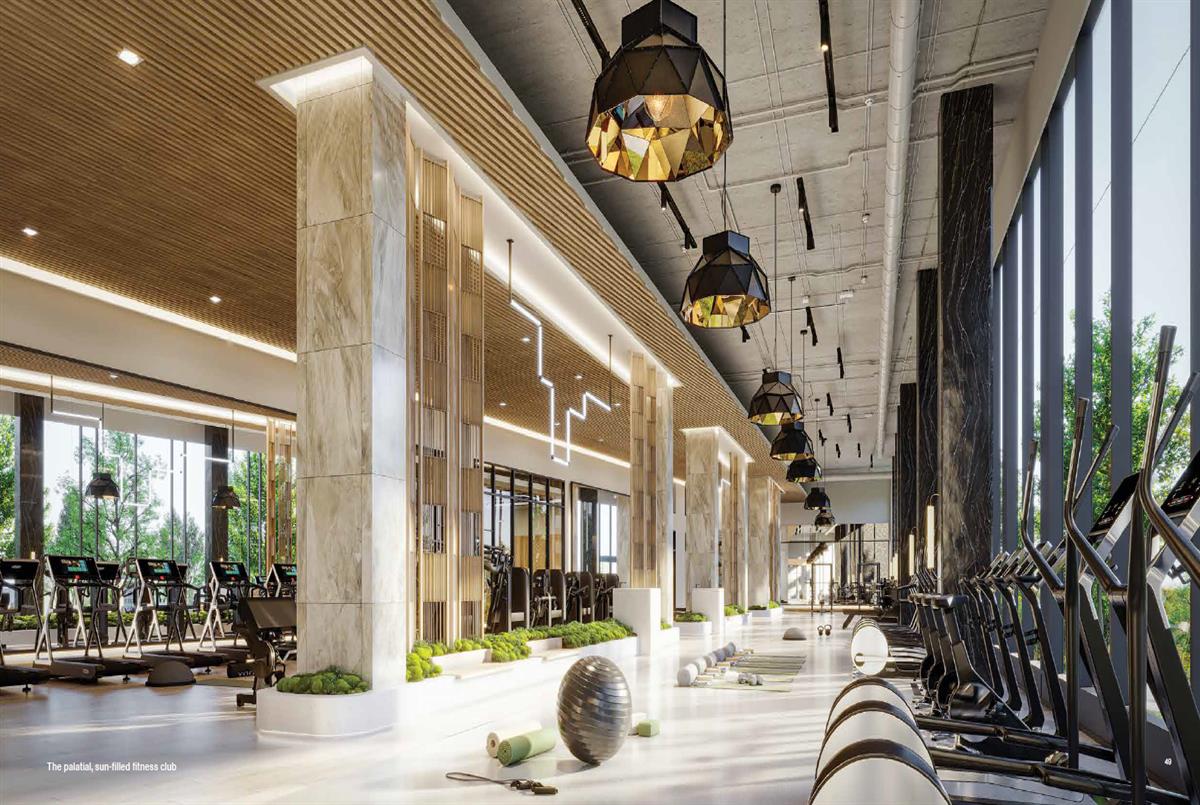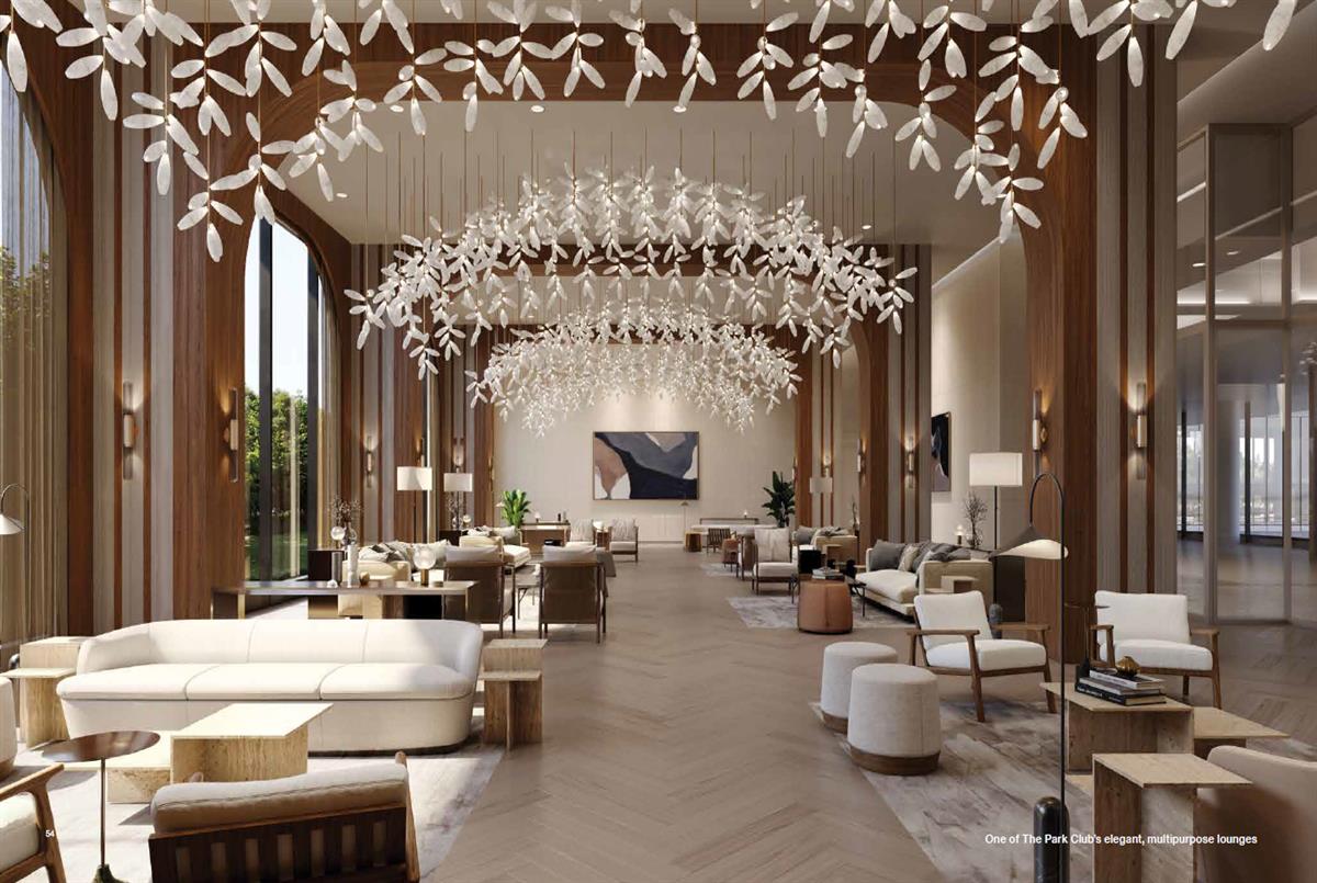 The Park Club™ offers 55,000 square feet of light-filled indoor amenities spread across four floors, featuring a comprehensive range of fitness, wellness, leisure, and social facilities. Enjoy two expansive rooftop terraces: The South Terrace, an outdoor sun-and-swim haven with a saltwater pool, sundeck, and cabanas; and The East Terrace, complete with outdoor barbecue areas and serene zen gardens.